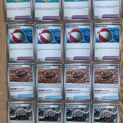Alle kort er trukket fra booster packs og efterfølgende direkte i sleeves.