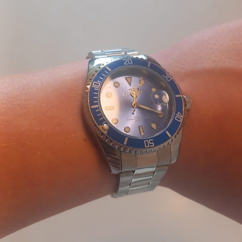 Min mand vil gerne sælge sit ur. Han fik det i gave for et par år siden, men han kan ikke lide det. Han har kun brugt det et par gange i den tid, og det har altid været i æsken. Det er et mekanisk ur, så det skal optrækkes med jævne mellemrum, så det behøver ikke batterier.