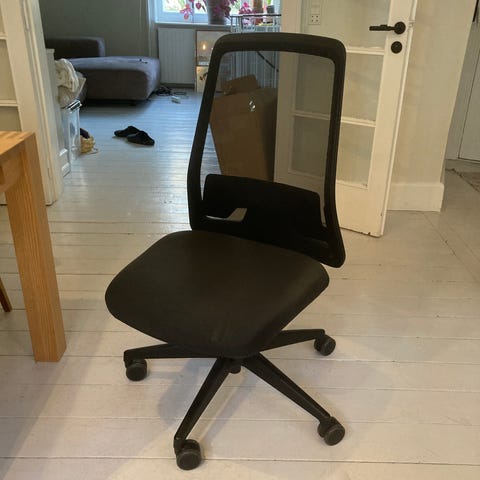Stolen kan indstilles i højden. Sælges da der ikke længere skal være en kontorplads i det pågældende værelse.