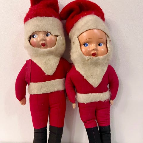 To søde og bløde nissedukker til hygge, pynt og mange timers leg. Rene og i god stand. 35 cm. høje. Materialer: stof og garn. OBS: CE mærkede. Sælges samlet for 80 kr.