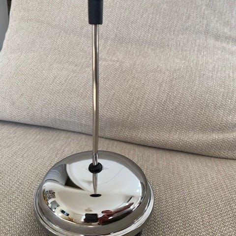 Bodum Chambord kaffe- og tekande i hvid keramik med træhåndtag. Kanden har en kapacitet på ca. 0,35 liter og inkluderer et indbygget metalfilter til brygning af kaffe eller te. Designet med låg og stempelmekanisme til filtrering. Fremstillet i Portugal.