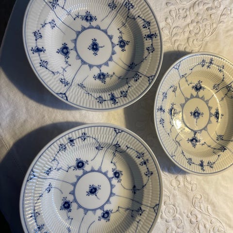 Royal Copenhagen Musselmalet Riflet Tallerken Hvid og Blå 17 cm