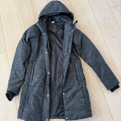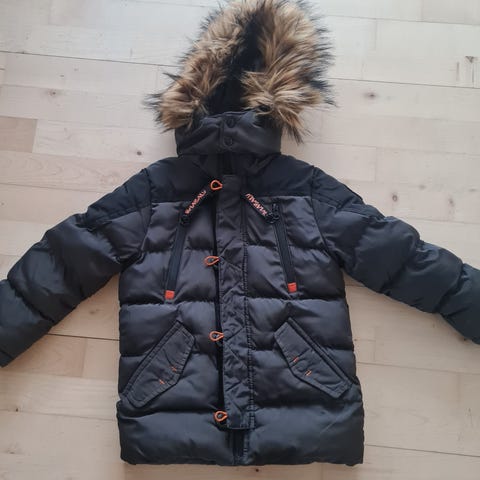 Hulabalu vinterjakke i størrelse 158/164 med hætte. 3 trykknapslids i hver side og fake fur + lynlåslomme indvendigt. Kan vaskes ved max 40 grader.