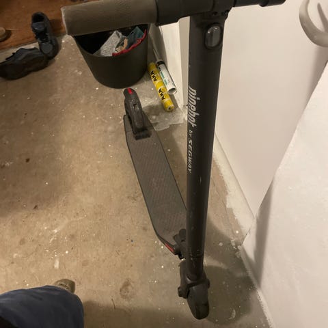 Ninebot El-Scooter Elektrisk i sort farve. Brugt. Har stået i garagen et stykke tid. Tilsyneladende intern batteri fejler af denne baggrund. Har ekstra ekstern batteri. Oplader er i orden. Sælges som den er. Har ikke tid til reparationer. Derfor så lavt pris. Kan sikkert sættes i stand og bruges uproblematisk.