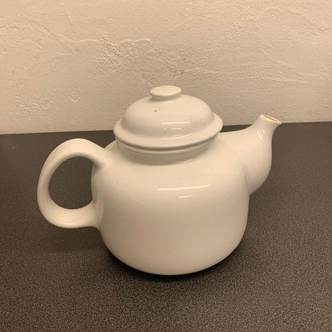 Porcelæn, Tekande og kopper, Hvidt., Tekande med sort "varmekappe". Mål: diam 12 cm hø 12 cm.