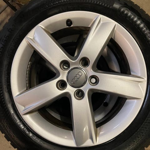 Original Audi fælge 16” med næsten ubrugte vinterdæk, har kun kørt en enkelt sæson.