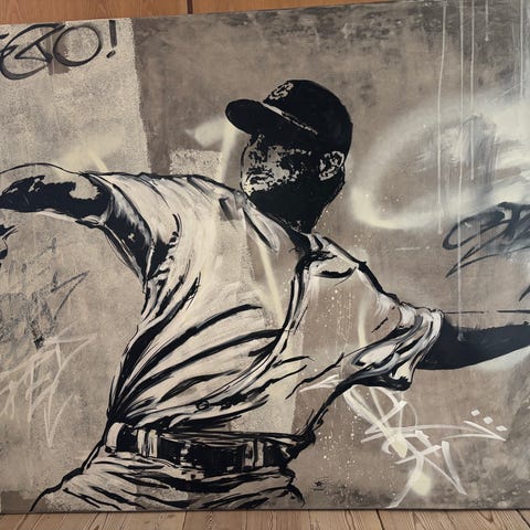 Fotooverføring med en high-solids tusch på naturligt lærred, 'Cubana' af Marek Braun (født 1970), kunstnerens signatur og titel på bagsiden. 100 x 140 cm. Marek Braun er uddannet på kunstskole i Polen og Tyskland. 1988 Medstifter af kunstnergruppen 'hrenosch' (Polen).