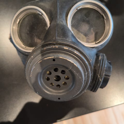 M45 gasmaske, oprindeligt en britisk model fra Anden Verdenskrig, som senere blev brugt af det danske civilforsvar.