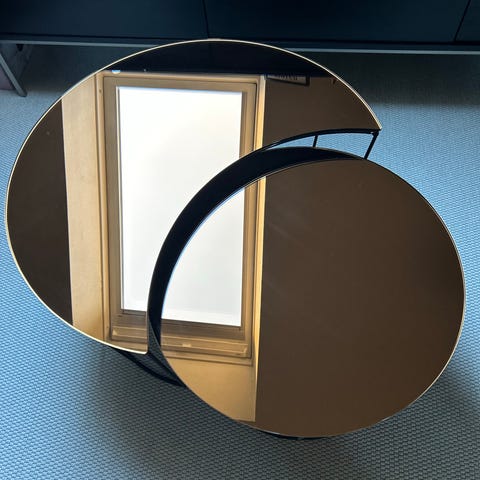 Indskudsborde i sort stål med farvet glas