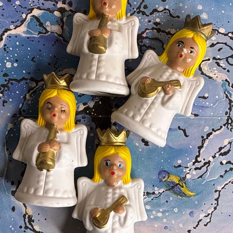 2 ældre engle stager - de har lidt brugsspor og den ene mangler indsatsen til lys,