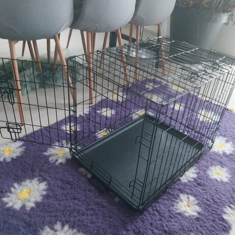 Godt sammenklappeligt hundebur. Mål BxHxD 60x42x42 cm.