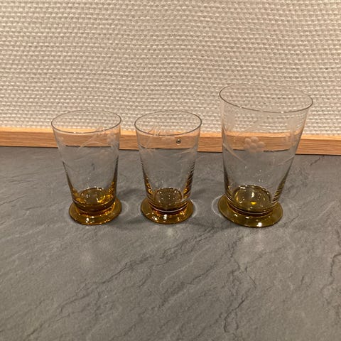 De er fra Kastrup glasværk. Det er vandglas med smuk ravgul fod.