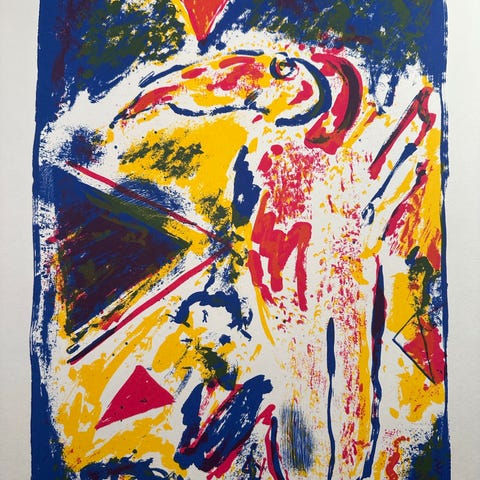 Stort lækkert gammelt Gunnar Bay litografi / serigrafi fra 1979, 55 x 70 cm. bølger lidt.