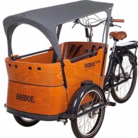 Babboe Big sunroof i rød farve, til de rigtig varme sommerdage.