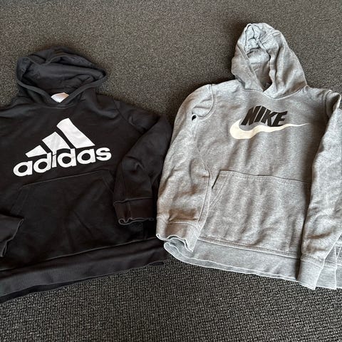 Sort og grå hættetrøje.