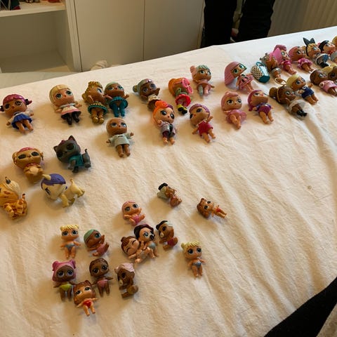 Stor LOL-pakke med flyvemaskine, der kan laves om til bil mm. Dukker, kæledyr og tilbehør. Røgfrit hjem.
