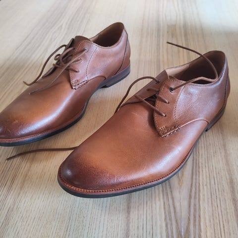 Clarks Festsko/pumps 6 cm hæl i str. 39, lavet af brun skind. Skoene har en moderat hælhøjde og er designet til formelle eller festlige lejligheder. De har en rund tå og en dekorativ sløjfe på fronten. Indersålen og ydersålen er lavet til komfort og holdbarhed. 7.5 US/ 39 EU /5.5 UK