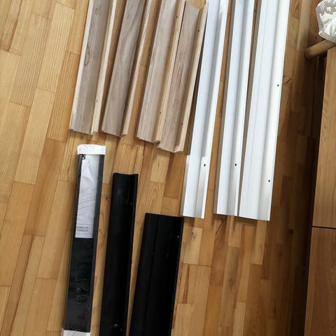 Sælger disse 4 meget flotte Billedehylder fra IKEA. De kan sagtens også bruges til andre udstillinger. Jeg har delt begge over i 2, så der er 4, som er 27,5 cm i længden hver. Man kan sagtens sætte dem sammen igen, eller save mere af den over selv.