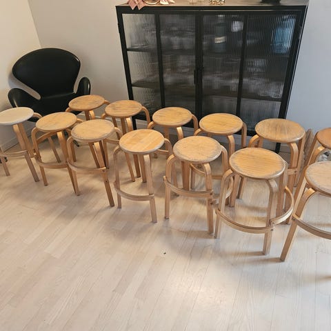 Brugte , men flotte funktionelle Taburetter i Bøgetræ .