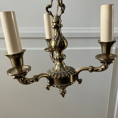 Trearmet lysekrone i messing