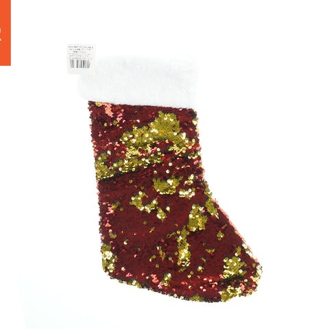 Hyggelig håndsyet julesok i klassiske rød-hvide striber og med en blød, fluffy hvid pelskant foroven.