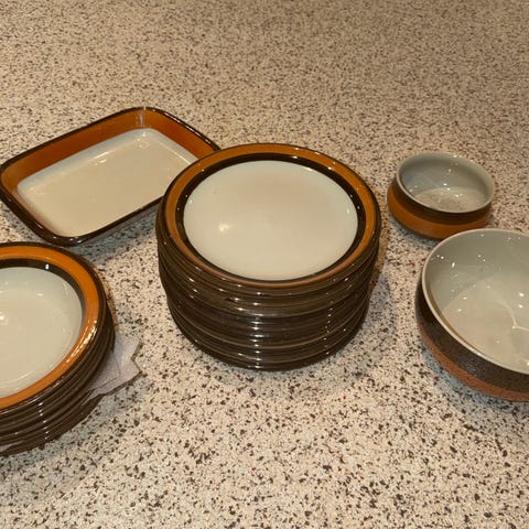 En tallerken har et par hår revner, men kan stadig bruges uden problemer.