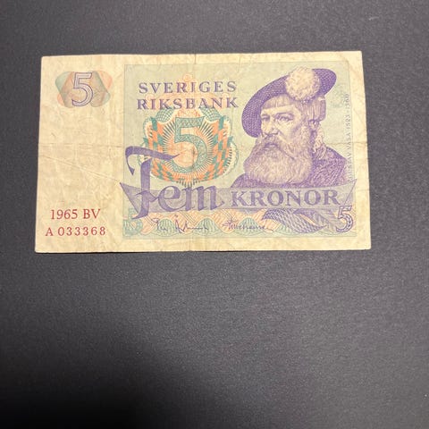 Sælger 2 originale svenske 5-kronesedler fra henholdsvis 1966 og 1970.