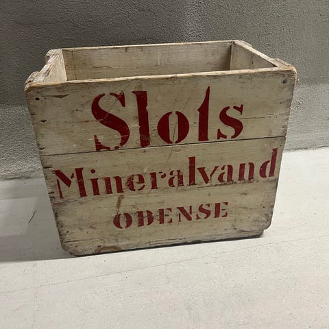 Vilh. Christiansen trækasse i rød farve lavet af træ. Kassen har en robust konstruktion med åbent design og en træstang på siden. Velegnet til opbevaring eller transport af varer.