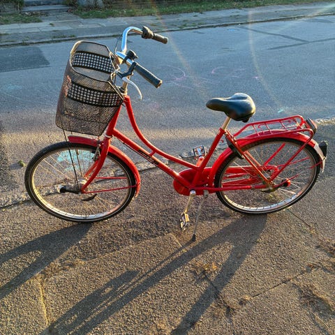 Dækkene er kun et halvt år gamle. Dynamo forlygten fungerer godt. Cyklen kører fremad.