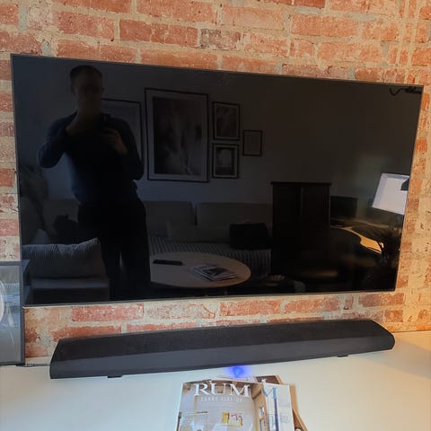 TV’et har slankt design og flot billede. Skærmen er uden ridser og fungerer 100 %.