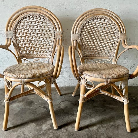 jeg sælger fire charmerende franske flettet stole i brun , grundet flytning. Stolene kan både bruges inde og ude.