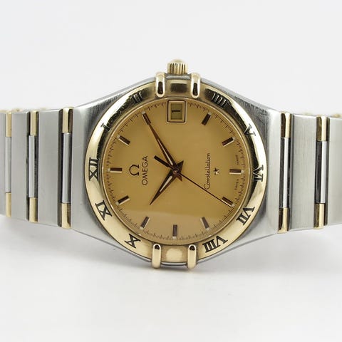 Omega constellation quadron med brillianter langs kanten og 18 kt guld i ståremmen. Uret er fra 2005. Jeg har desværre ingen papirer men er ret sikker på det er købt ved en guldsmed i Køge. Evt bytte med rundt constellation med guldkant i dame eller herre udgave. Ny pris 22.000 kr. Uret har nummer 6554/866.