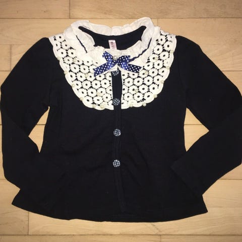 Cardigan, ny 116 / 122 mørkeblå navy cardigan marineblå navy, NY, str. 116, NY MARINEBLÅ CARDIGAN MED BLONDER OG PRISMÆRKE