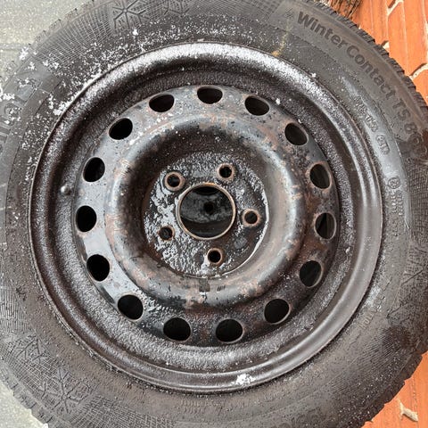 Bridgestone Blizzak LM 005 TL vinterdæk på stålfælge. Kun kørt sparsomt én sæson.