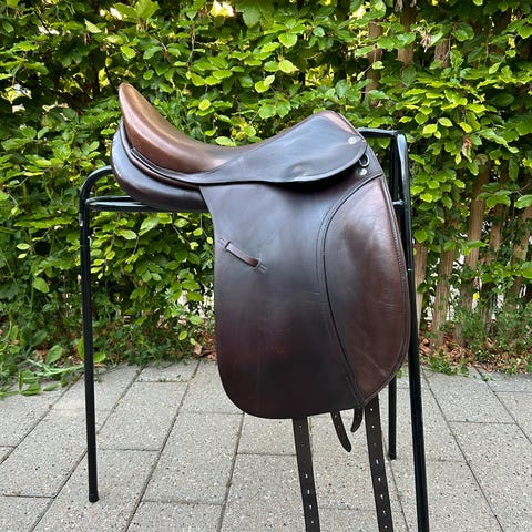 Er helt nyomstoppet hos Noble ride og ikke brugt siden omstopning. Den er 17.5” med en anlægsflade omkring 42 cm