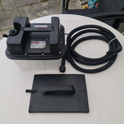 Luxi Tapetafdamper med en effekt på 2200 watt. Produktet anvendes til fjernelse af tapet og inkluderer en slange og en plade til dampapplikation. Strømforsyning: 220-240V~50Hz.