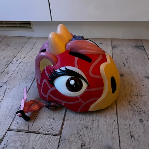 Giro Section C283 cykelhjelm i størrelse Small, passer hovedomkreds 51-56 cm. Hjelmen er hvid med røde stropper og vejer 267 gram. Designet til brug ved cykling, skateboard og rulleskøjteløb.