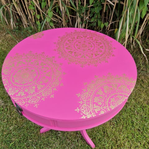 Lampebord, Rundt bord med en skuffe. malet med kalkmaling. H. 71 Diameter 52