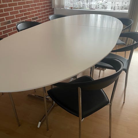 6 stole med bord sælges. Der er brugsspor på bordet som gerne burde kunne ses på vedhæftede billeder.