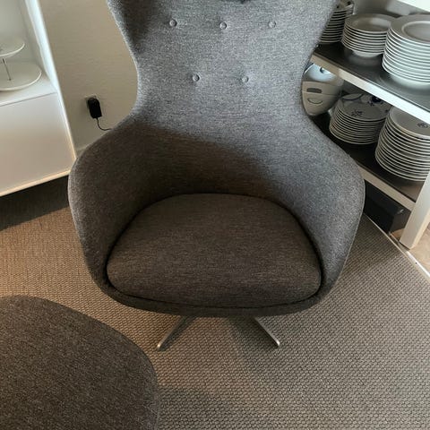 Lækker lænestol inkl. fodskammel i yderst god stand. Ingen synlige brugsspor. Stået i hjem uden dyr, røg eller parfume.