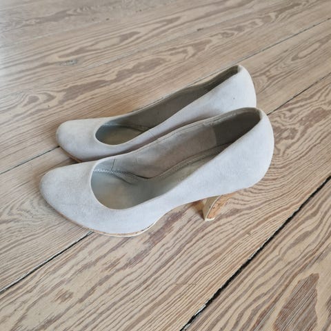 Ruskinds-lignende tekstil, hæl og plateau er med glitter.