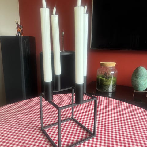 Audo Copenhagen Kubus lysestage i sort metal med otte lysestager. Kubus designet som en kubisk ramme til brug med stearinlys. Fremstillet i metal med minimalistisk og geometrisk udseende.