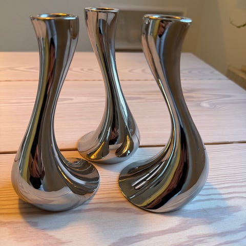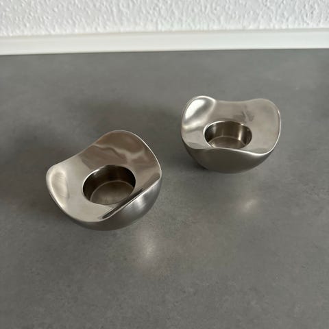 Georg Jensen lysestager i rustfrit stål med et moderne og organisk design.