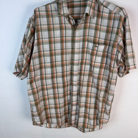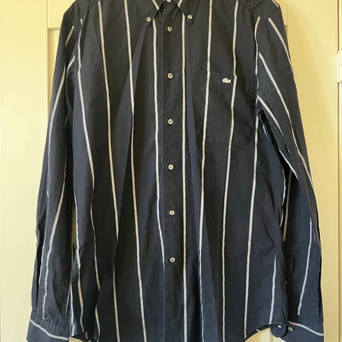 Vintage Lacoste blå/beige skjorte, størrelse 42