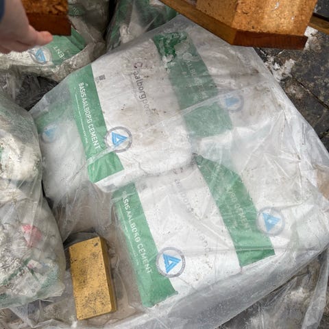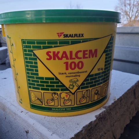 Skalcem Skalcem 100 i farve Sand i en 10 kg spand og et par kg. i en anden spand.