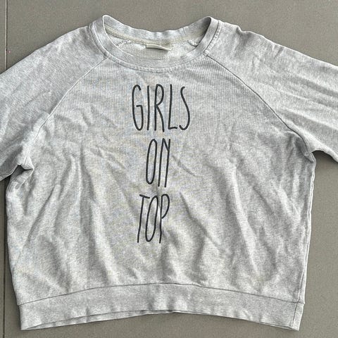 Ganni Bluse i størrelse S til kvinder. Blusen er grå og har et print med teksten 'GAME OVER YOU LOSE' på forsiden. 100% bomuld.