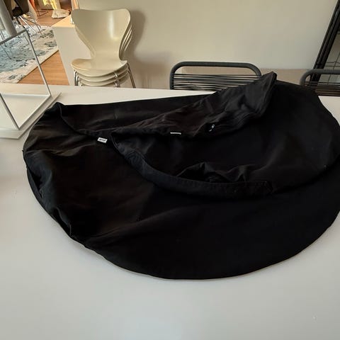 Loungepude med originalt hvidt betræk i kraftig bomuld. Der medfølger også originalt betræk i mørkegråt. Måler 130x100 cm. Kan lynes af og vaskes. Puden og betræk i fin stand. Det grå betræk er næsten som nyt. En fantastisk hyggekrog til børn og voksne