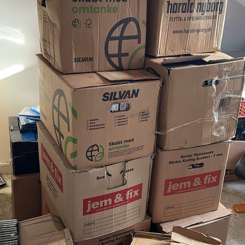 Kasser med CD’ere indeholder ca: 250-270 stk’s.