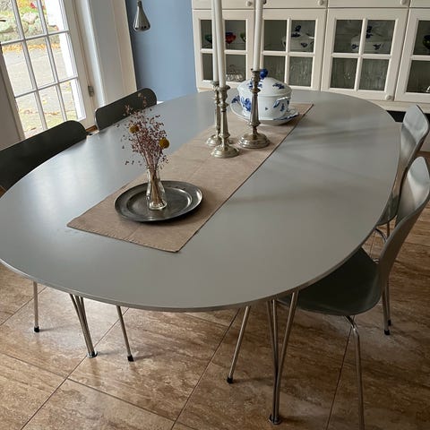 Rigtig pænt og vedligeholdt spisebord. Der er to ekstra plader i så det kan forlænges.