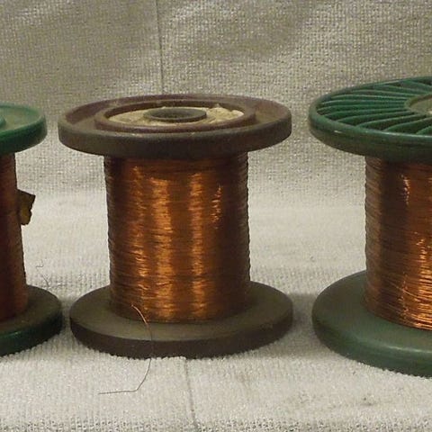 Til bevikling af mindre elmotorer. 0,12 - 0,14 - 0,16 - 0,25 - 0,33 - 0,35 mm tykkelser. 8,5 kg, kobbertråd. Samt 1. rulle messingtråd 3 kg. 0,5 mm. Henvendelse på telefon.